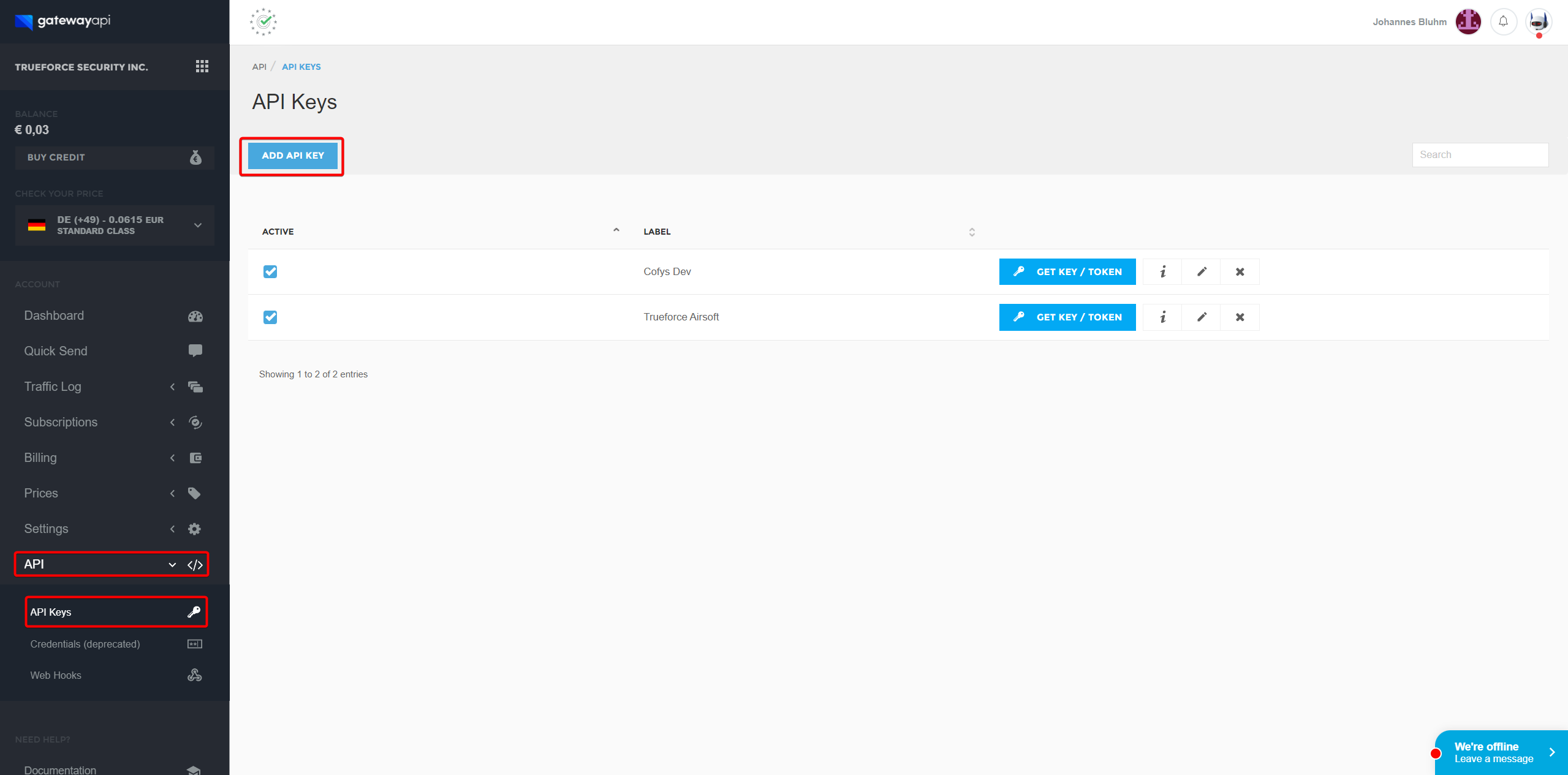 API Keys erzeugen