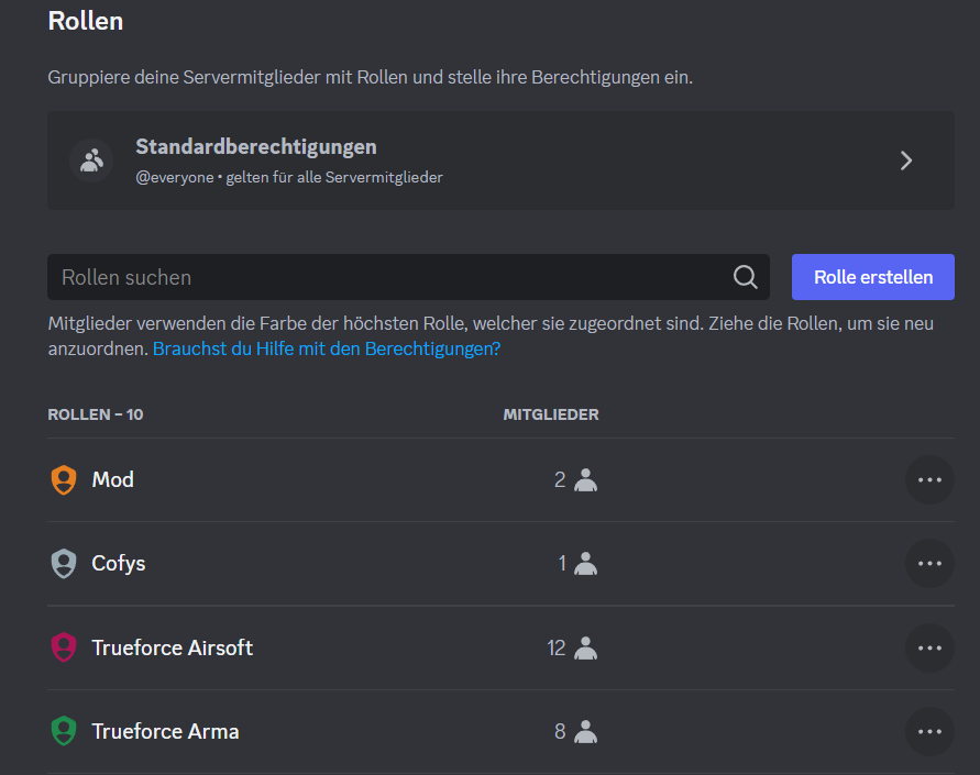 Im Beispiel unten, kann der Bot die Rollen Trueforce Airsoft und Trueforce Arma vergeben, nicht aber die Rolle Mod.